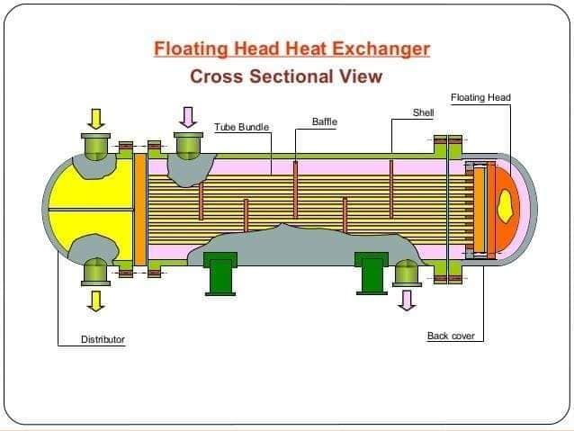 The operation of a floating head heat exchanger follows the basic heat transfer principle of indirect heat exchange between two fluids.